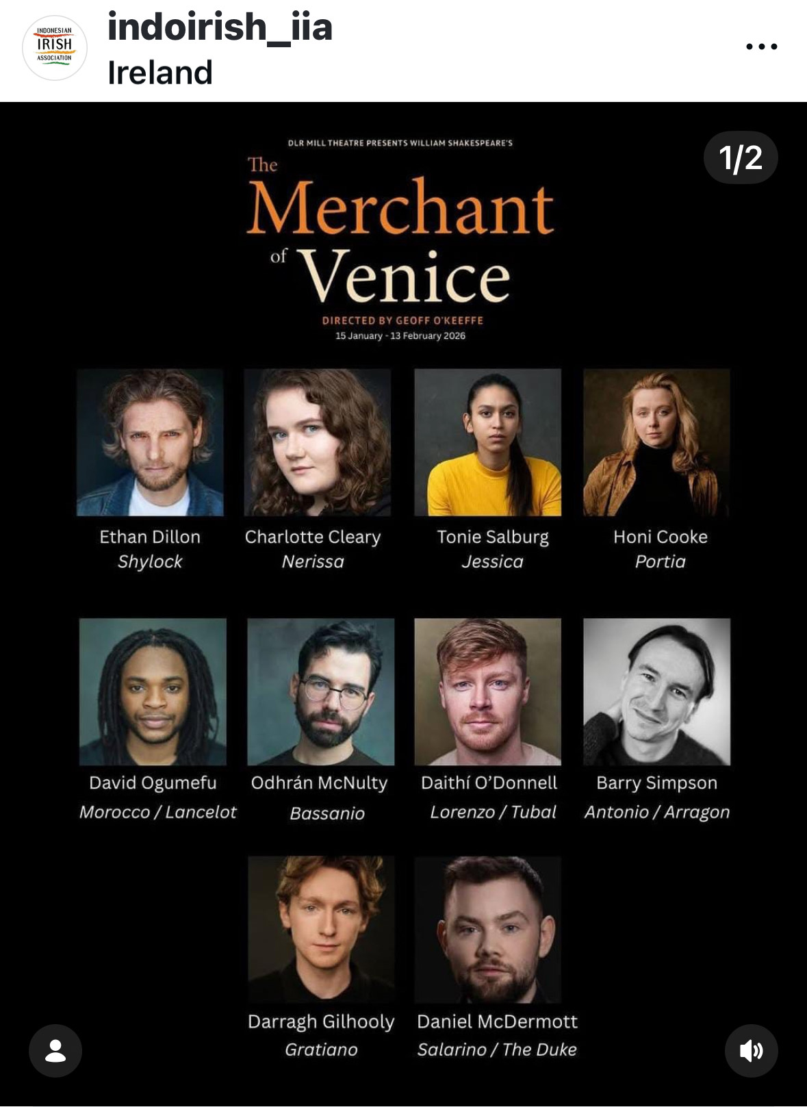 Tonie is currently appearing in The Merchant of Venice by William Shakespeare at the Mill Theatre in Dundrum.