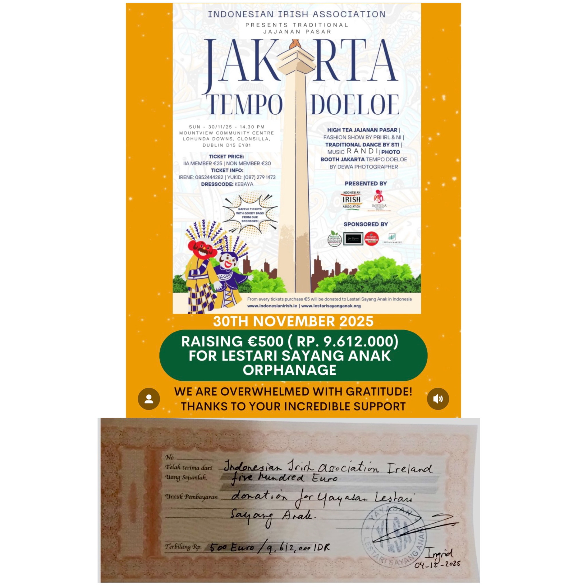 Thanks to your kindness and generosity, we successfully raised €500 (Rp. 9.612.000) to support the children's wellbeing, education, and daily needs.