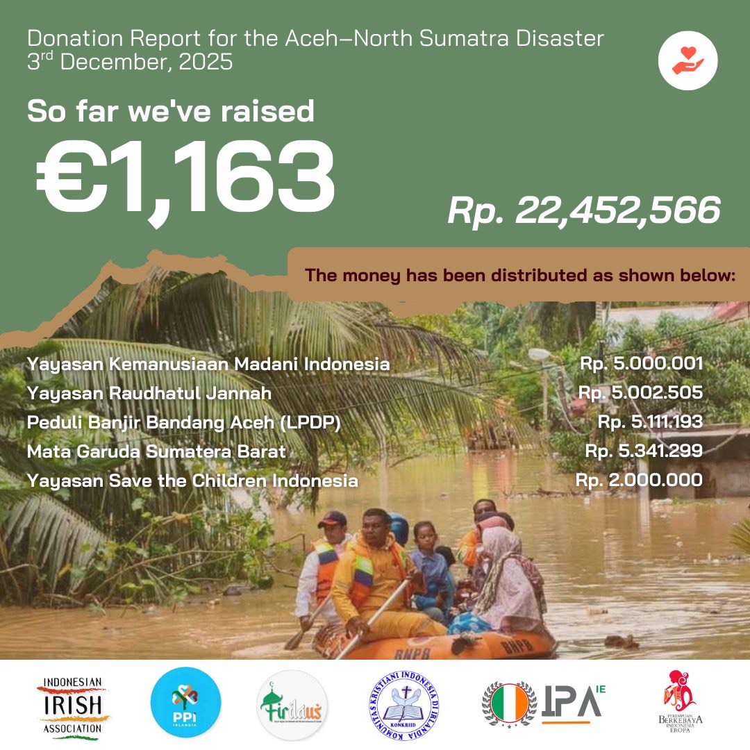 Thanks to your kindness, we have successfully raised €1,163 (Rp. 22,452,566) and distributed the funds to trusted humanitarian organisations on the ground.