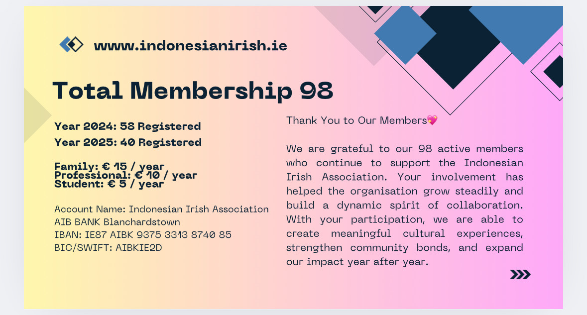 Your membership helps us celebrate Indonesian identity and build a stronger, more connected community in Ireland.